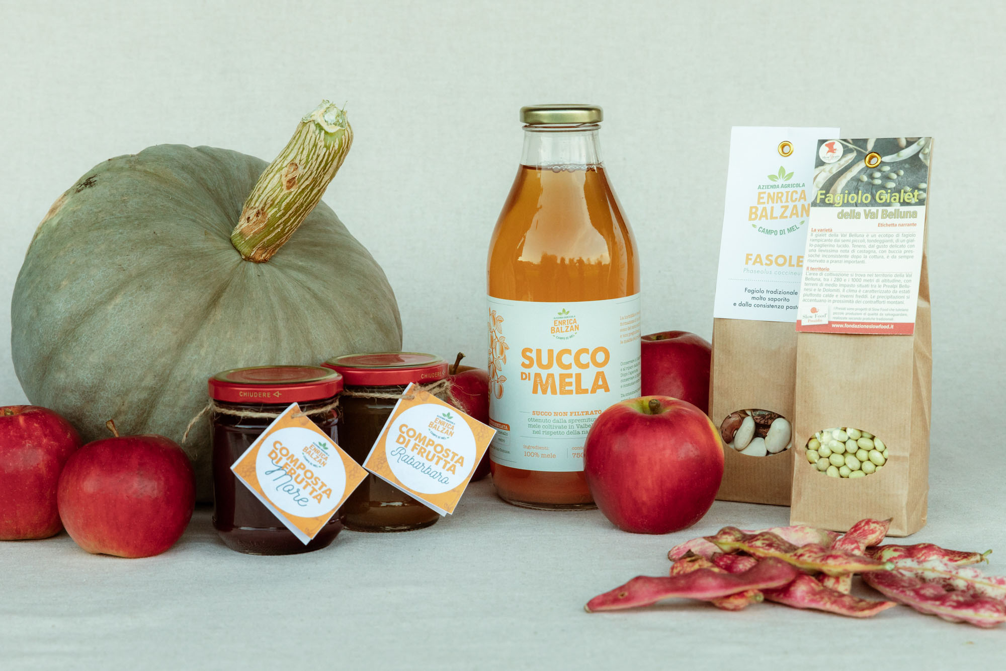 The cultivated horticultural varieties are chosen among types guaranteed by local tradition, a line rewarded by the recognized quality and awarded by the market. A quality also expressed by the juice, fruit of the transformation of apples from the Company. Among the horticultural products, the Santa Bellunese pumpkin, the yellow bean of Valbelluna and the red bean bala excel.