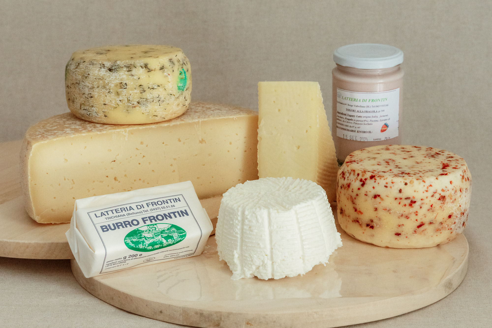 The Frontin Dairy is walking swiftly towards a century of life and business activity. Its cheeses, both the low-fat and the full-fat ones, the butter made with the cream that emerges from the resting milk, and then the schiz and ricotta cheeses, mark the rhythm of a production strong in tradition and whose quality is recognised everywhere.